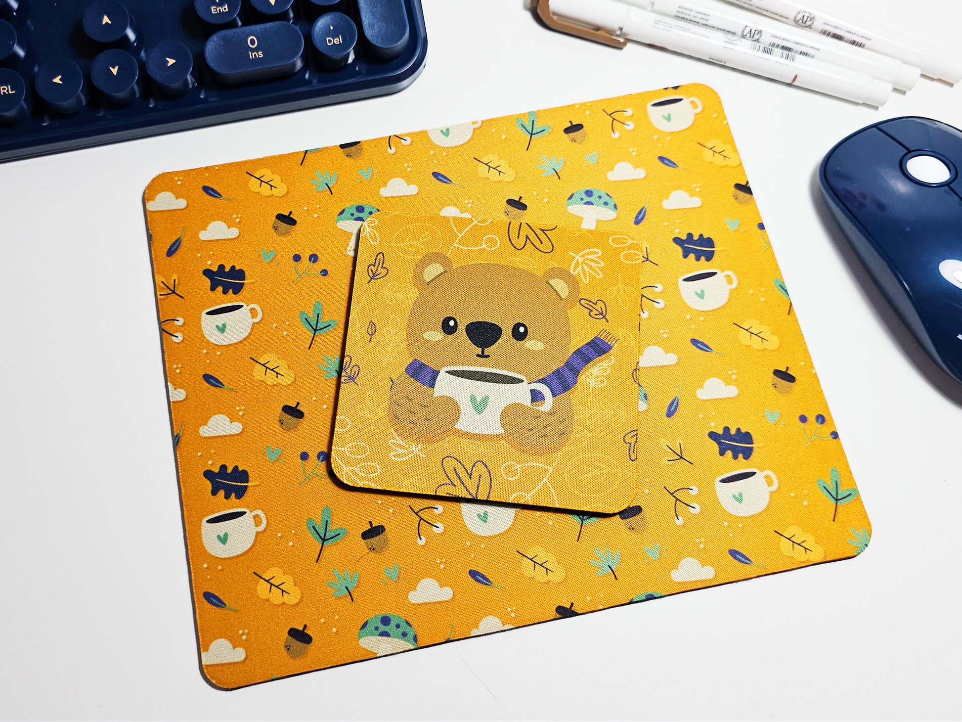 Keep your desk efficient, clean, and super-cute with this neoprene-backed mousepad and coaster desk set. Generously sized and vividly colorful, these soft and cushy desk accessories will take your office to the next level of adorableness.