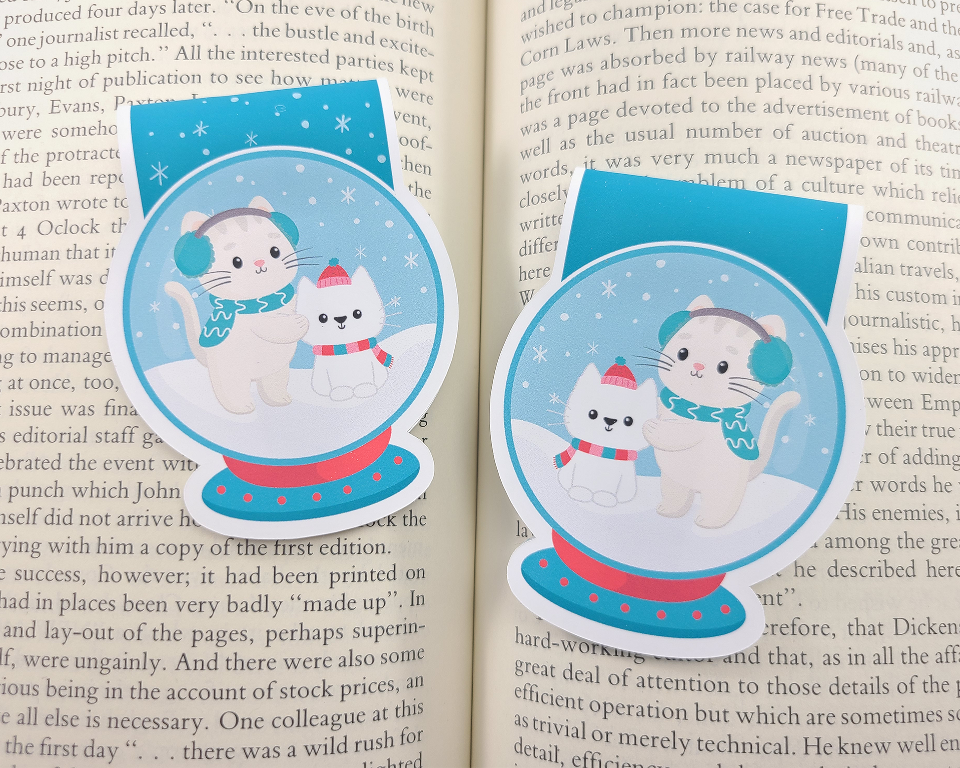 Our magnetic bookmarks range in size from approximately 1"x3.5" to 3.5"x3.5" depending on the individual design. They are securely packaged and shipped to prevent bending.