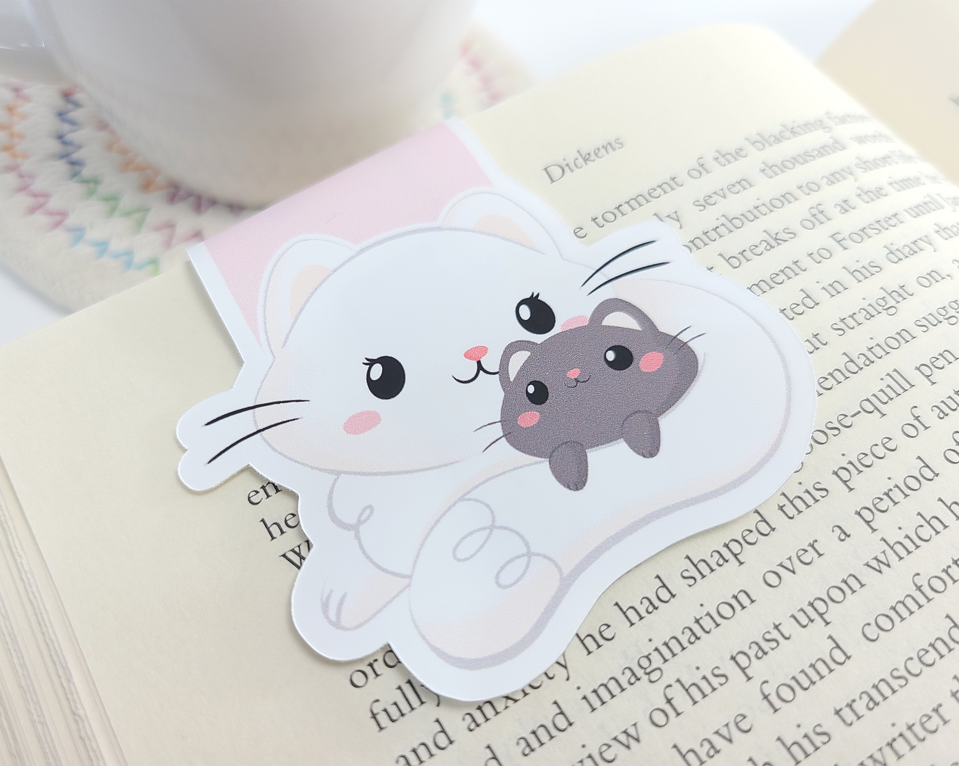 Cat White Magnetic Bookmark