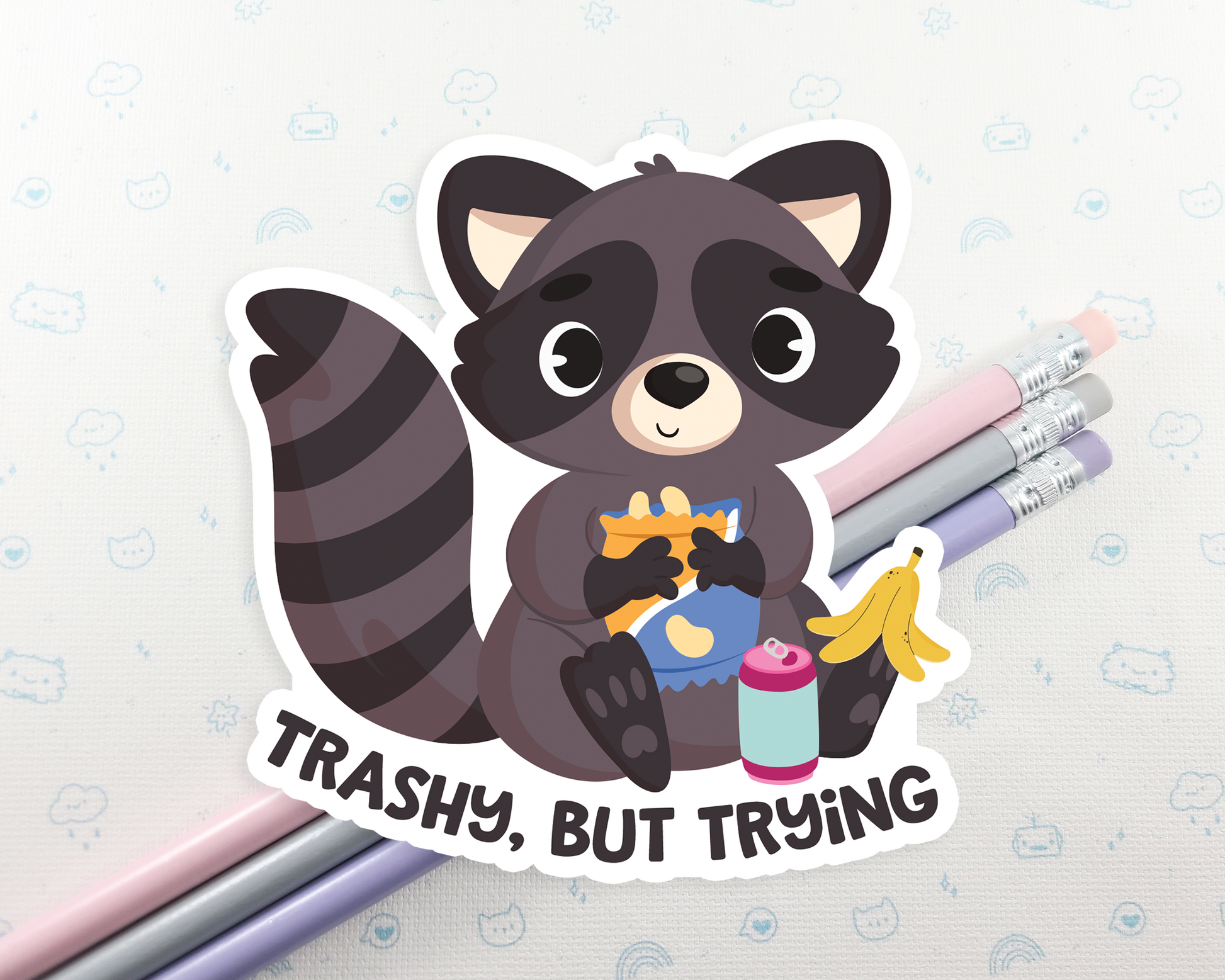 Raccoon Trashy but Trying Sticker