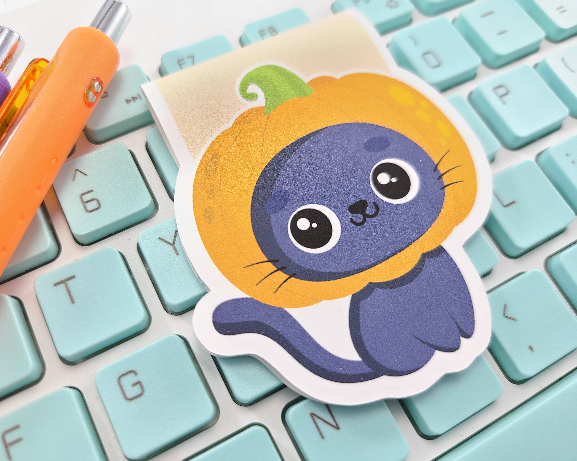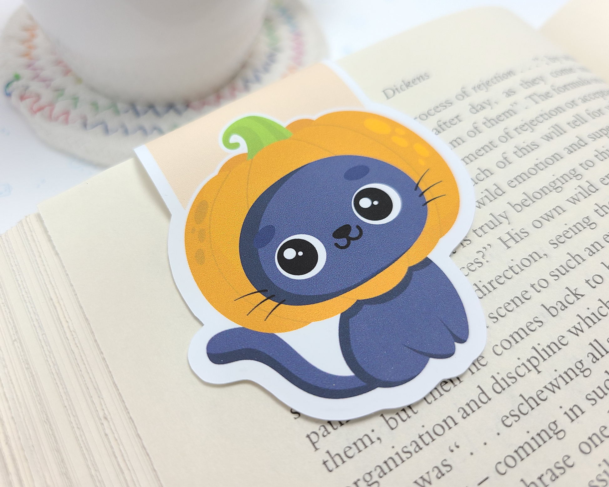 Halloween Cat Pumpkin Head Magnetic Bookmark