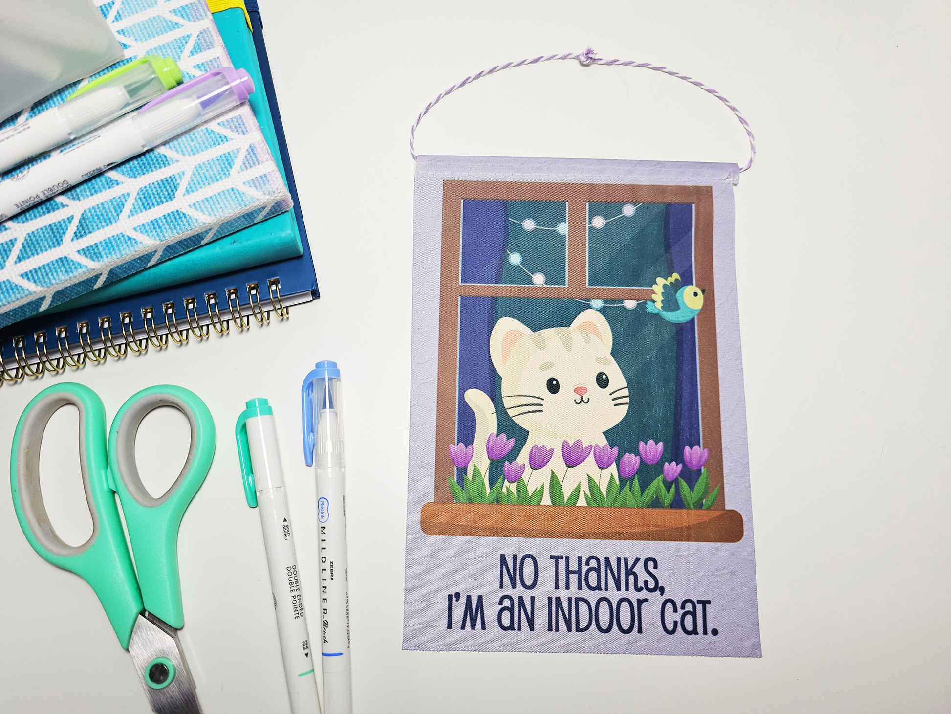 These bright and beautiful banners are 5.5 inches by 8 inches and feature vibrant, fade-resistant, adorable designs. Thin, light, and easy to hang, these flags can add a pop of color and cuteness to any space. The color of the thread for hanging may vary, but it will always match the flag.