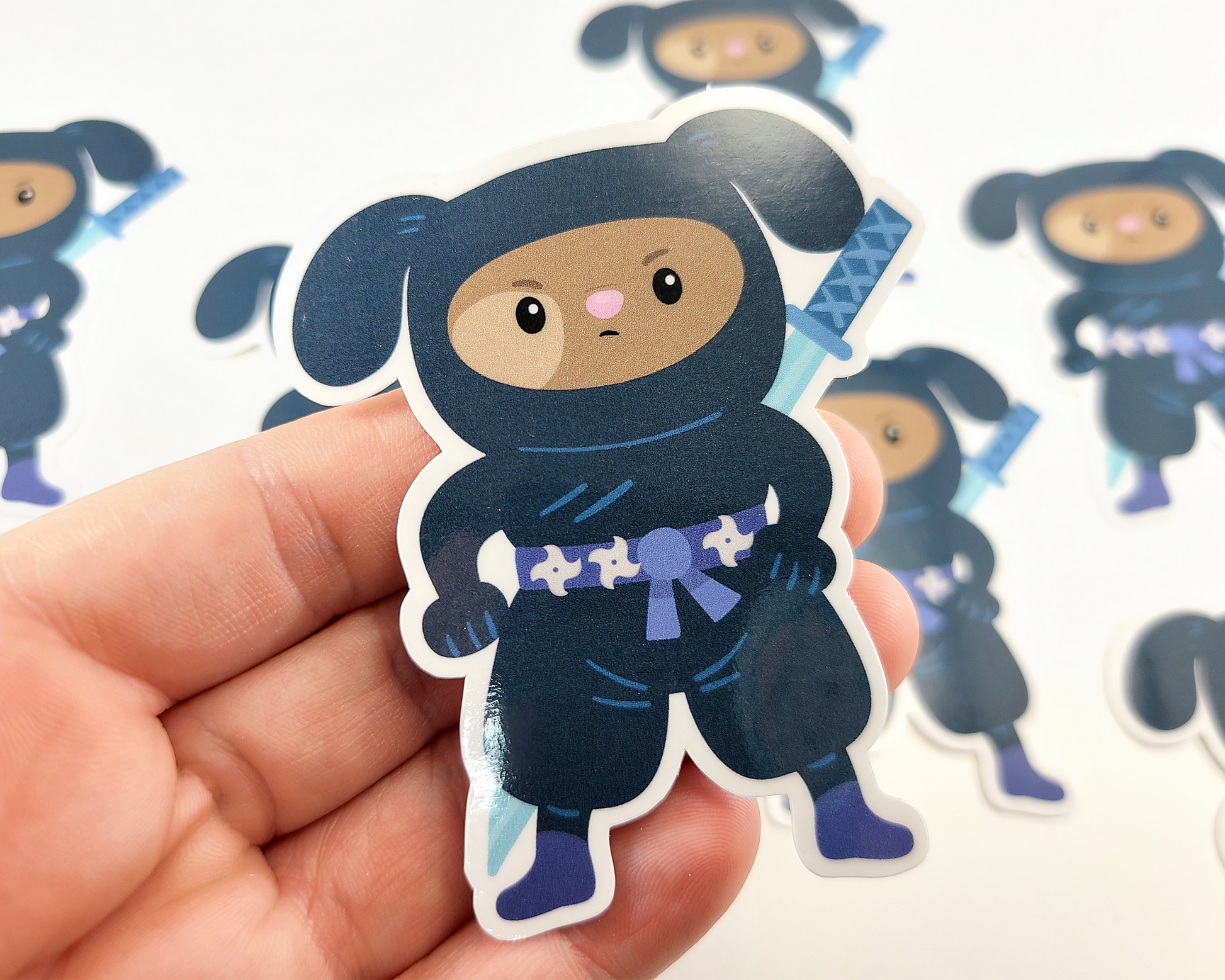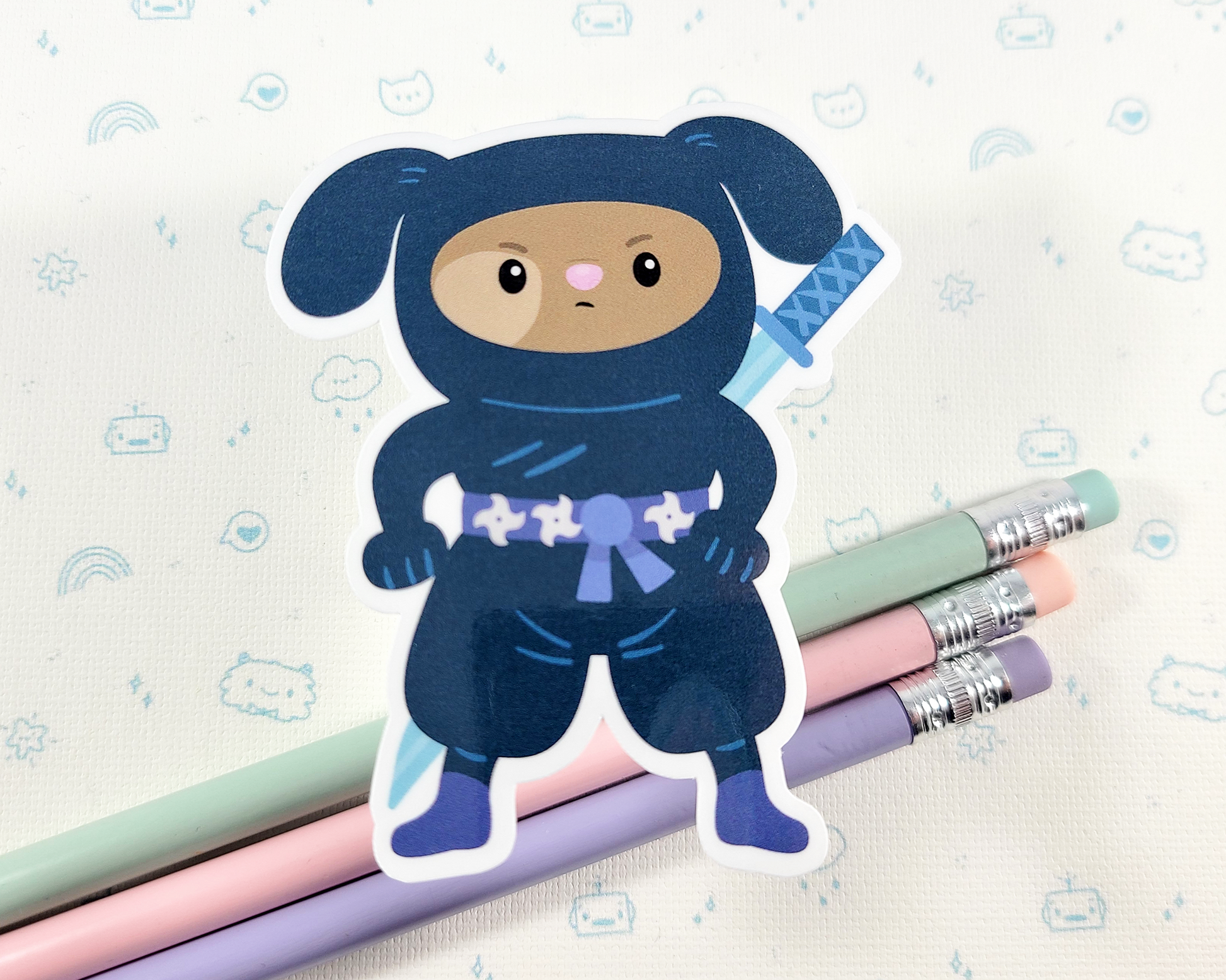 Ninjacat is ready to purrfectly protect whatever you stick him to. And he'll do it cutely too. This sticker is the cat's pajamas!