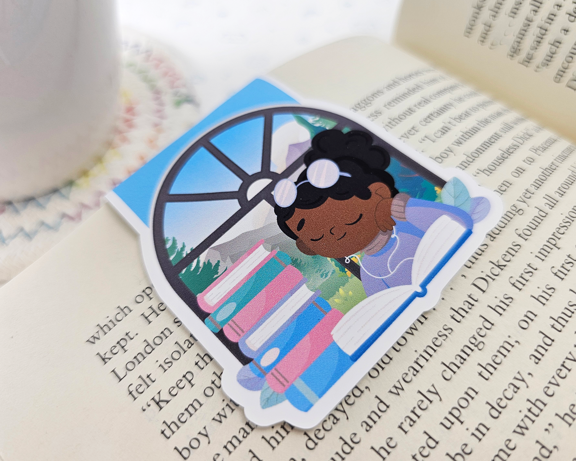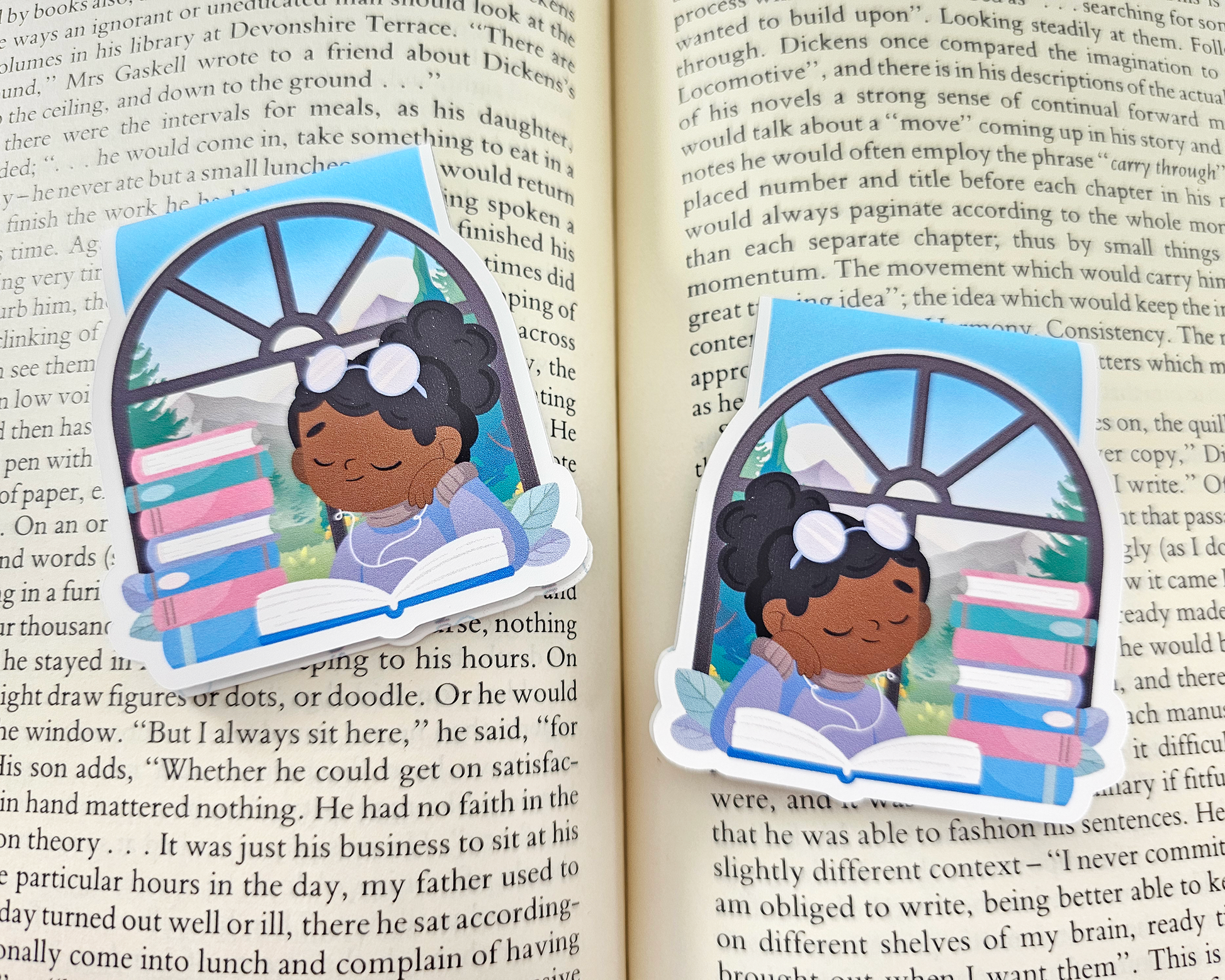 Reading Girl Black Hair Magnetic Bookmark